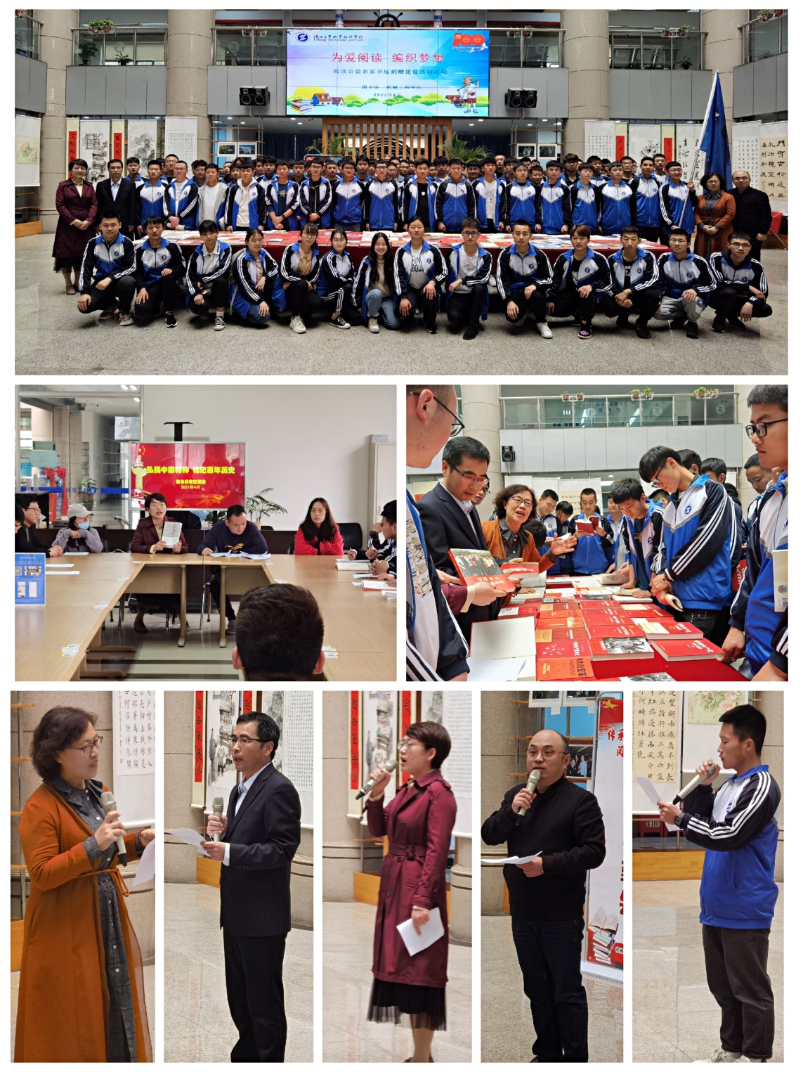 4月20日,图书馆联合纽约国际967线路测试在图书馆一楼大厅举办了“为爱阅读,编织梦想——公益阅读农家书屋捐赠建设活动”启动仪式。纽约国际967线路测试党总支书记苏宏志、图书馆馆长高凤香、副馆长王丁及纽约国际967线路测试百余名师生代表参加了活动。活动由王丁副馆长主持。