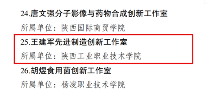 近日,陕西省教科文卫体工会委员会印发《关于命名2024年陕西省教科文卫体系统职工(劳模、工匠人才)创新工作室和创新工作室联盟的决定》(陕教科文卫体工发〔2024〕41号),我校王建军先进制造创新工作室获陕西省教科文卫体系统“职工(劳模和工匠)创新工作室”荣誉称号。