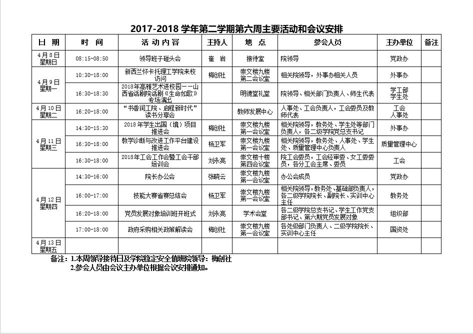 2017-2018学年第二学期第六周主要活动和会议安排.doc